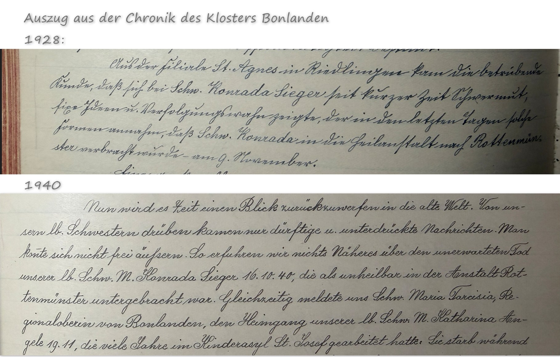 „Der 1887 geborene Andreas Wehrle aus Unteropfingen galt in der Schule als hochintelligent, wollte aber nicht auf eine höhere Schule gehen. Später erkrankte er psychisch und kam in die ‚Heil- und Pflegeanstalt‘ Weißenau bei Ravensburg. Die Familie bleib im Kontakt mit ihm. Sein Bruder Konrad sagte immer wieder, er werde den Andreas da rausholen, wenn der Krieg vorbei sei.