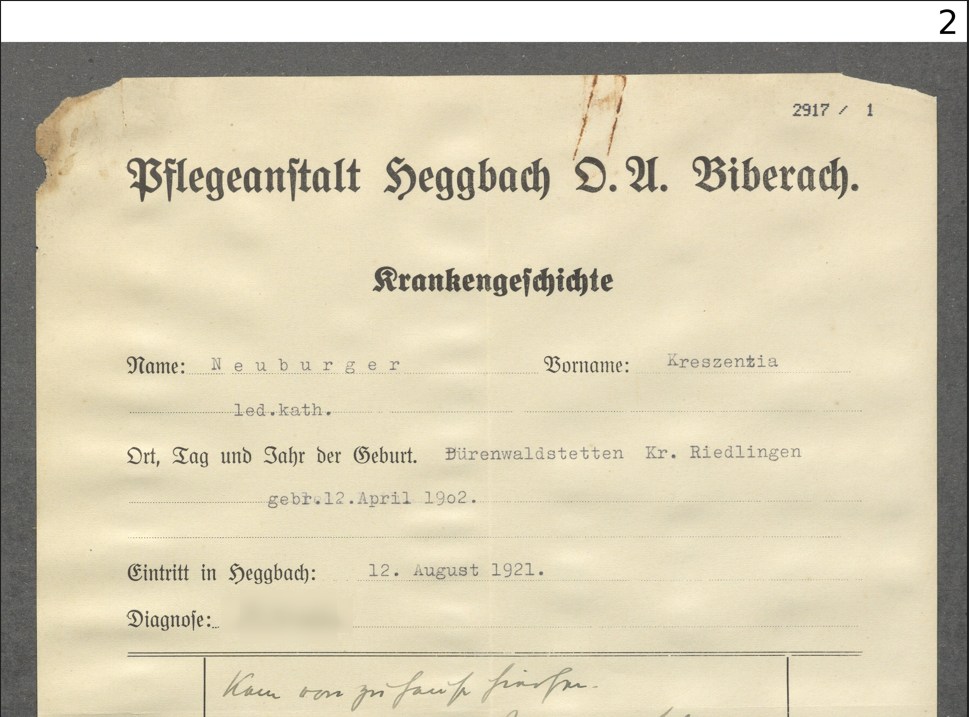 - Sammlung Krankenakten der nach 1900 geborenen Zwiefalter Patienten. Archiv ZfP Zwiefalten